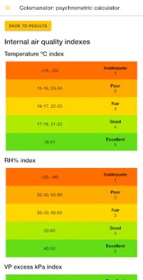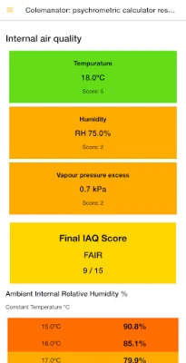 Using just a few user supplied details the APP calculates the psychrometric properties of the air and evaluates the air quality using parameters provided in an ‘Indoor Air Quality Matrix’ (IAQM)