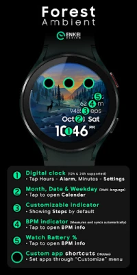 Enkei Design happily presents this artistic digital watch face, with an immersive animated forest scene - Forest Ambient!