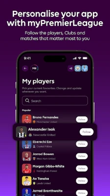 and Join myPremierLeague to personalise the App to the Matches, Players