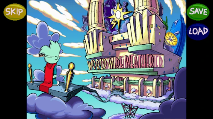In our latest quest we join Pajama Sam as he enters the World Wide Weather, the facility in the sky where weather is controlled all over the world. Shortly after Sam's arrival, an accident with the machine that controls all the weather in the world sends it out of control.