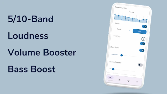 3. Fine tuning: Use the 5/10-band equalizer, bass booster, and loudness to find the perfect sound.