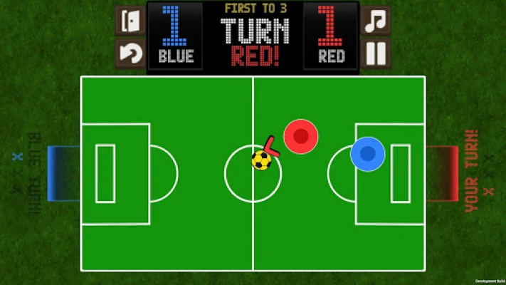 Blue VS Red. Play against your friends or the computer, in an 1v1 battle on the football field or on the ice. The first player to reach 3 goals is the winner.