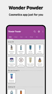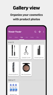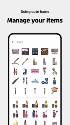 You can easily manage your cosmetics by categorizing them by their usage status, such as those in use, those already purchased, and those already used up.