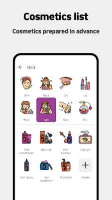 You can manage various categories of cosmetics such as makeup, skincare, and body care. You can also freely register your desired products in addition to the prepared basic items.